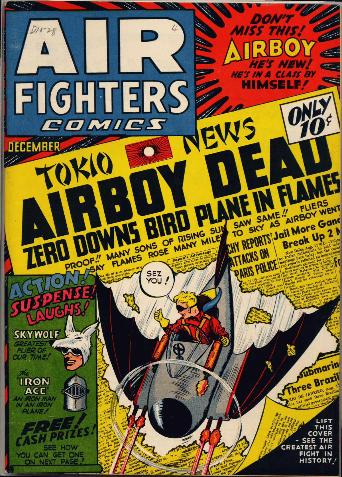 Just so you know not every new publisher had a major success at this time. Some published moderate selling comics and managed to stay in business for years and years. Others simply were a flash in the pan. Among the mix of small to medium sized publishers were Hillman Periodicals (Miracle Comics #1 - 2/40), Novelty Publications aka Curtis Publishing Company (Target Comics #1 - 2/40), Prize Publications (Prize Comics #1 - 3/40), Columbia Comics Group (Big Shot Comics #1 - 5/40), Ace Magazines (Sure-Fire Comics #1 - 6/40). Some of these companies did make significant contributions though. Hillman Publications produced a character called Air Boy in Air Fighters Comics #2 whom would stay in print for a long time and even come back during the 80's. In Air Fighters Comics #3 would appear The Heap, comics first "muck monster." He would inspire many monster style superhero characters in the future.