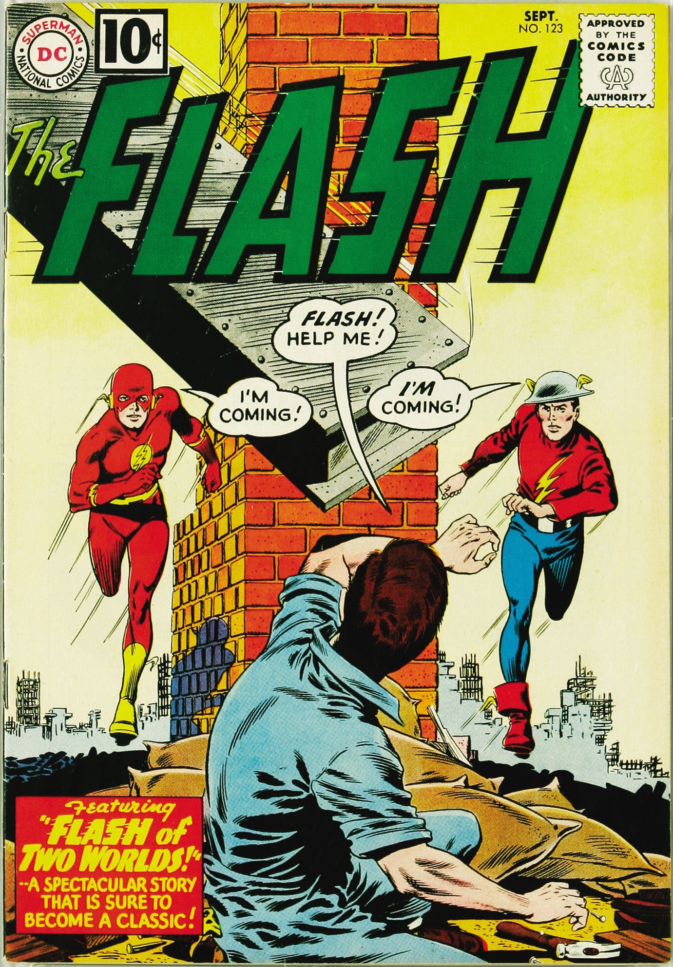 The "Golden Age" and "Silver Age" of superhero comic collided in Flash #123 (July 1961). In this story called "The Flash of Two
